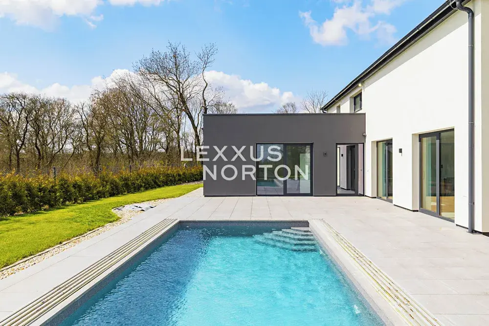 Tento rodinný dům k pronájmu se skládá ze 2 podlaží. V přízemí se nachází vstupní hala, obývací pokoj s krbem a přímým vstupem na terasu a do zahrady, kuchyňský kout s kuchyňským ostrůvkem propojený s jídelní částí, ložnice, samostatná toaleta, technická místnost, komora a relaxační spa & wellness zóna se saunou a masážní vanou. V prvním patře jsou situovány 3 ložnice, koupelna a prádelna. K nemovitosti náleží garáž pro dvě vozidla a jedno kryté venkovní parkovací stání.