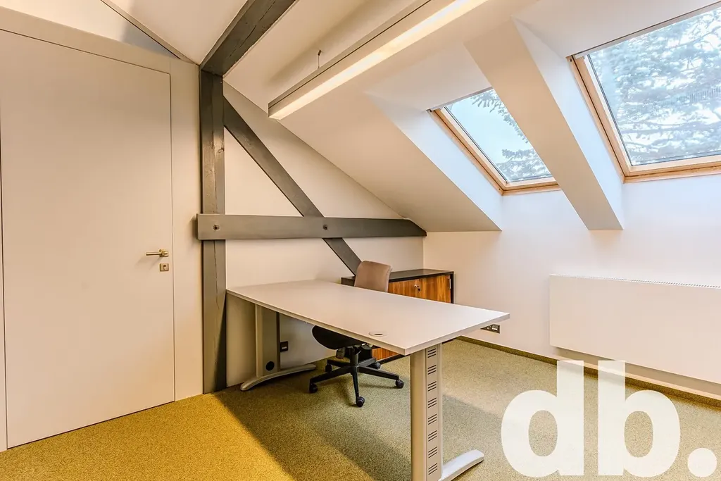 Nabízíme k pronájmu celé samostatné podlaží administrativní budovy s výtahem, které zahrnuje kancelářské prostory a samostatný byt. Kancelářské prostory jsou kompletně vybavené a je možné je bezprostředně užívat, kdy jejich součástí jsou samostatné kanceláře, zasedací místnost a kancelářská místa umístěná ve sdílených prostorech. V prostorech je dále k dispozici oddělený kuchyňský kout a dvě sociální zázemí. Na stejném patře se nachází ateliérový byt o výměře cca 70 m2, který je součástí nabídky nájmu předmětných prostor. Byt je po kompletní rekonstrukci, nebyl nikdy užíván a disponuje samostatnou šatnou, prostornou koupelnou a vstupem na balkón s výhledem do klidové zóny za domem. K dispozici spolu s užíváním kancelářských prostor a bytu jsou dvě parkovací místa umístěná na parkovišti ve vnitrobloku budovy. V uvedené ceně nájemného není zahrnutý odběr energií a služeb. Vzhledem ke členitosti nemovitosti není možné v popisu obsáhnout její veškeré dílčí náležitosti a technické specifikace, případné dotazy rádi upřesníme po telefonické domluvě, doporučujeme.