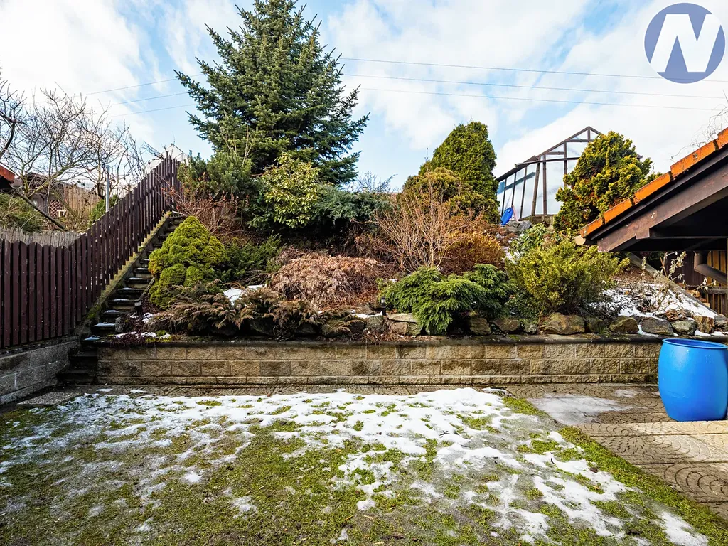 Velkou výhodou je prakticky řešená dispozice – v přízemí se nachází prostorný obývací pokoj se vstupem na terasu a zahradu o výměře cca 200 m², dále kuchyně s kuchyňskou linkou, technická místnost s umyvadlem a samostatné WC s umyvadlem.