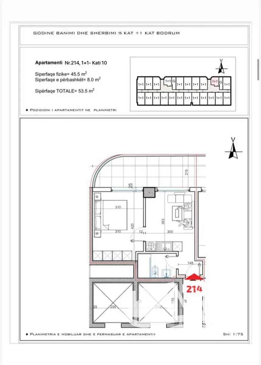 Nabízíme k prodeji apartmán 2+kk v novém projektu, o ploše 53.5 m² v oblíbené lokalitě Shengjin, přímo na břehu moře. Apartmán se nachází v 7 patře s výtahem. Díky umístění budovy v první linii má apartmán ničím nerušený výhled na moře.