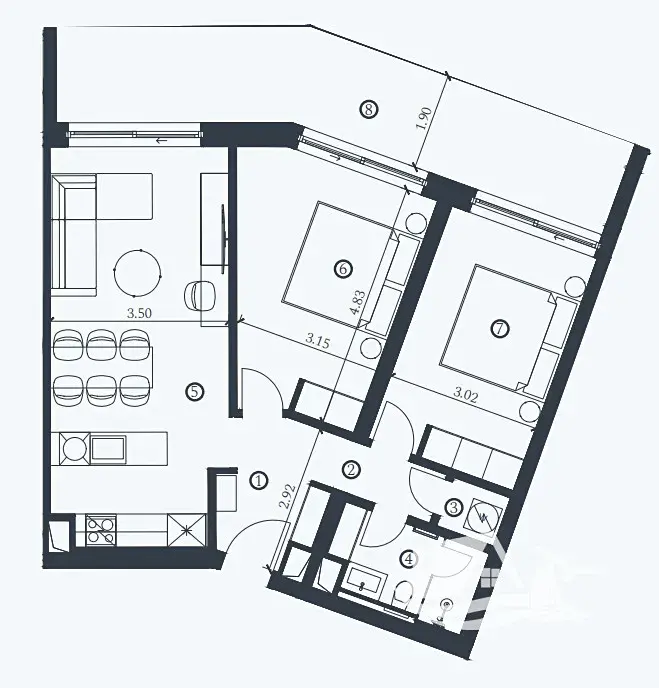 Celková plocha jednotky činí 91,8 m², k níž náleží prostorná terasa o velikosti 25,5 m² s úchvatným výhledem na Jaderské moře. Interiér je zařízen moderním a vkusným nábytkem, který podtrhuje kvalitu a styl celého prostoru.