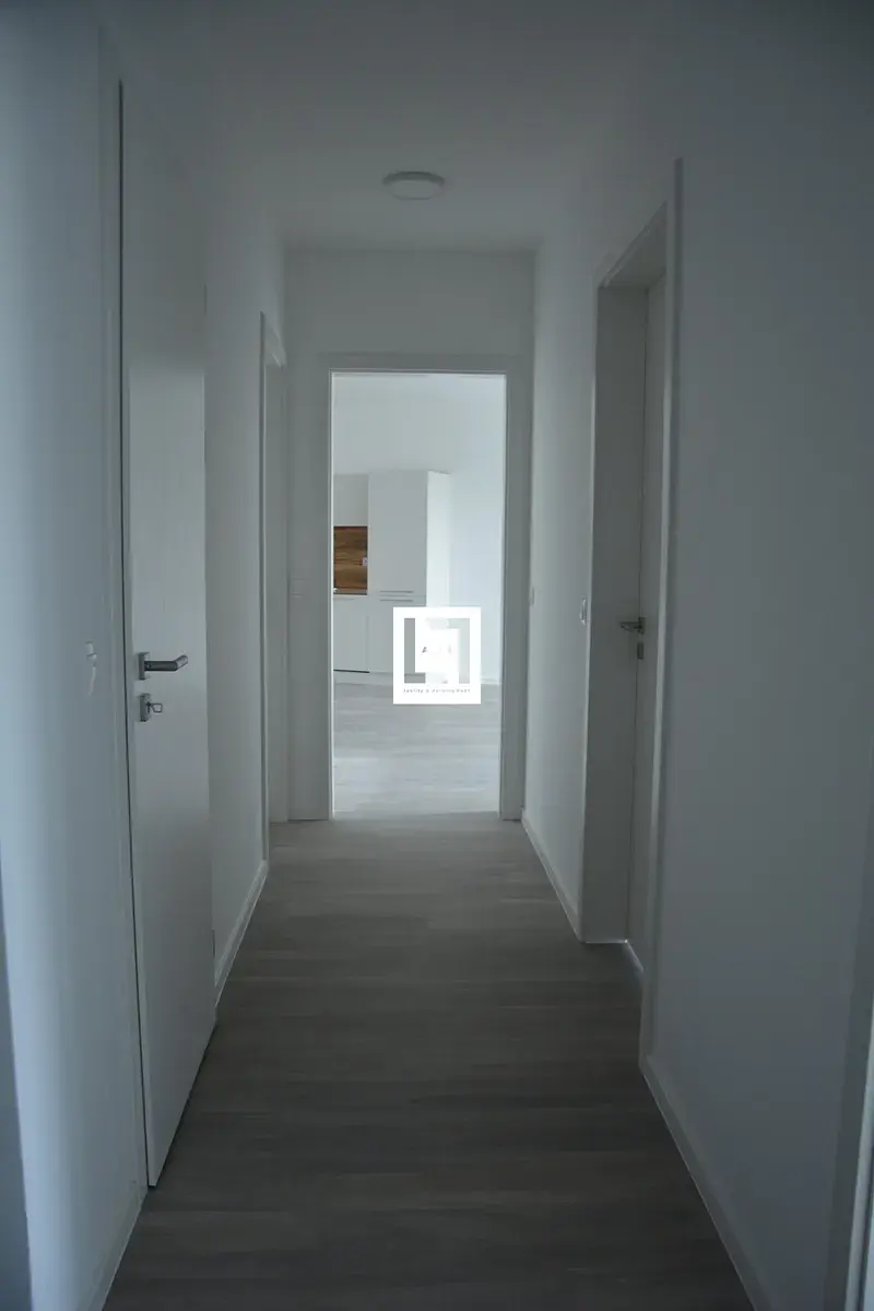 terasa a 25,94 m2 předzahrádka se nachází v přízemí domu s pěkným výhledem do okolí. Celý byt je nádherně prosluněný a působí vzdušně. Vedle vstupních dveří je vestavěný odkládací prostor umístěn za posuvnými dveřmi. Z chodby se vchází do dvou samostatných pokojů, komory s regálovým systémem, samostatného WC, koupelny a do obývacího pokoje s kuchyňskou linkou. Na míru řešená kuchyňská linka je