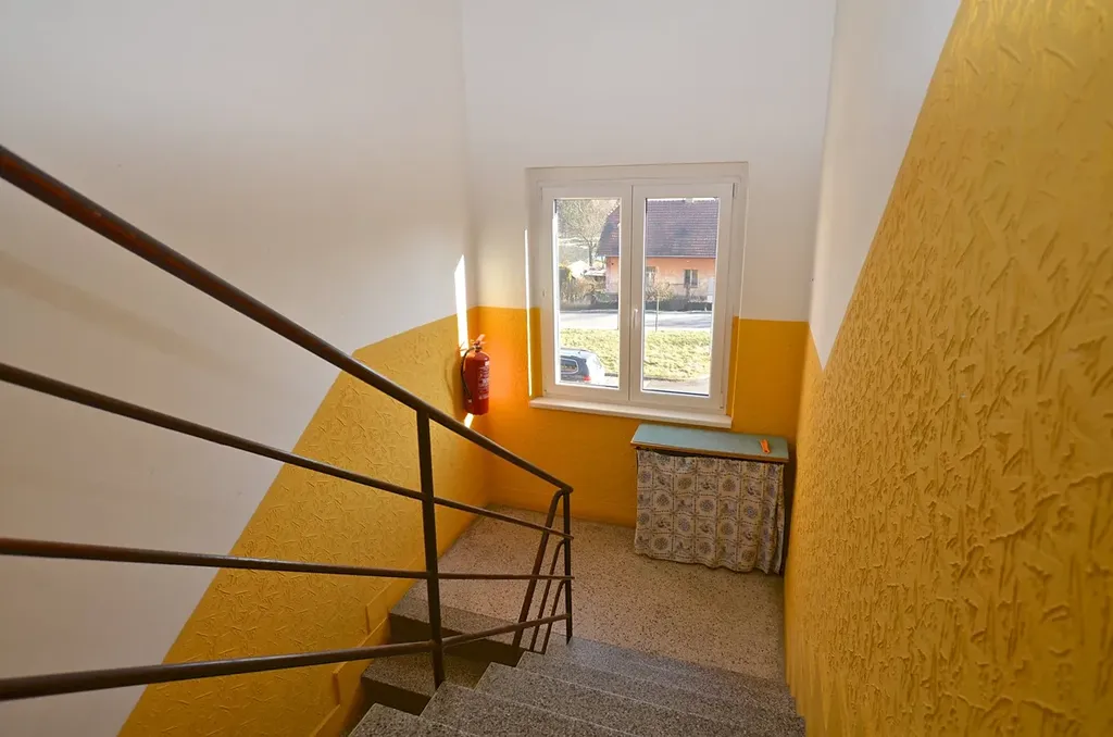 V suterénu bytového domu jsou 2 prostorné a uzamykatelné sklepy 4.3 + 3.1 m2.