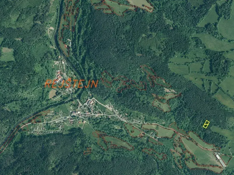 Předmětem dražby je pozemek o výměře 1 970 m2 ve městě Rejštejn, které je čtvrtým nejmenším