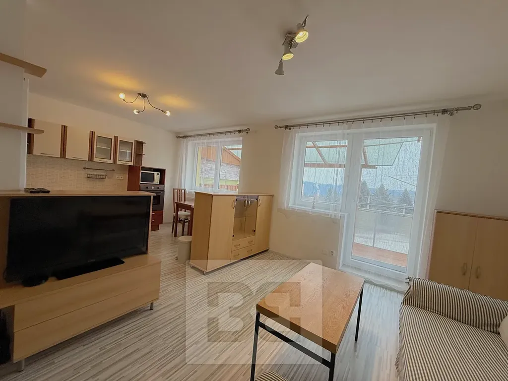 • Obývací pokoj nabídne pohovku, televizi a jídelní stůl se židlemi