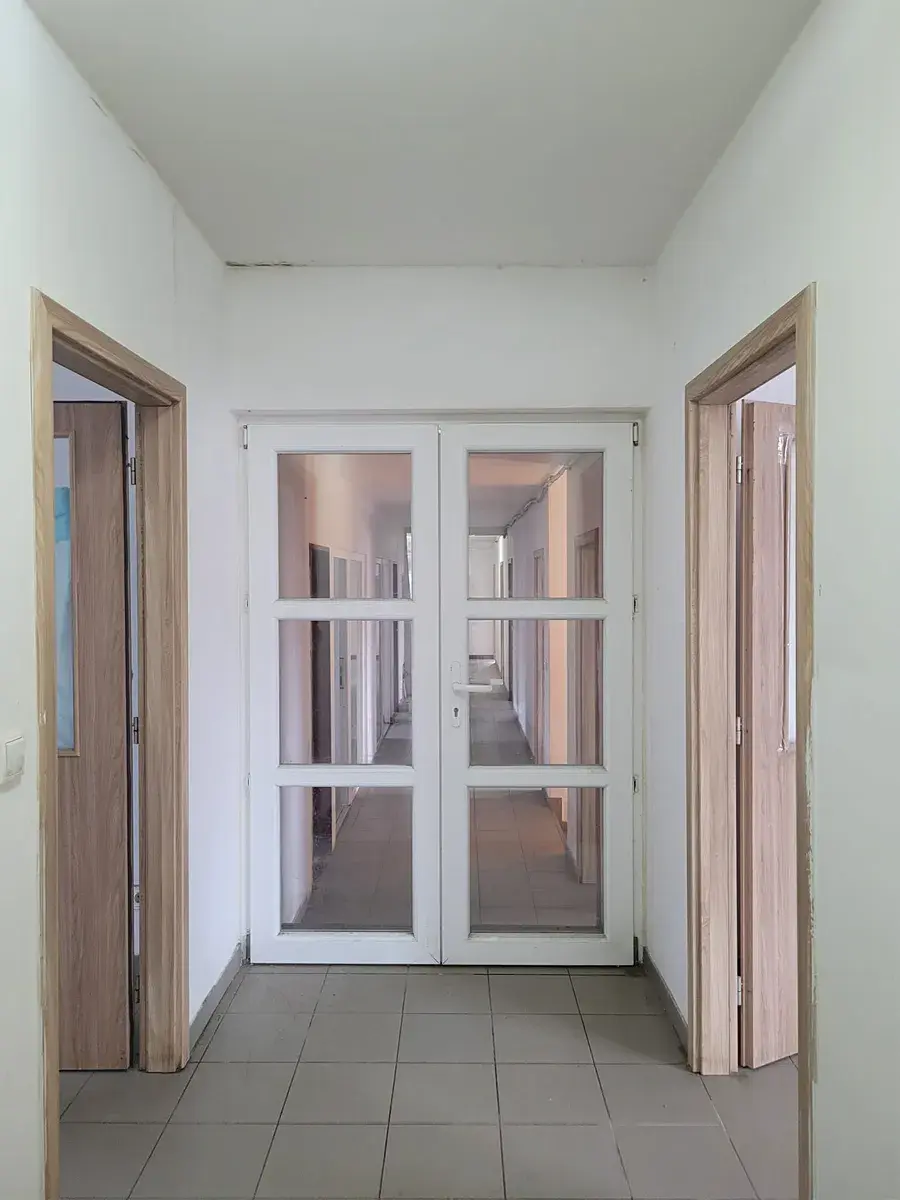 Patro má celkem 13 místností a je dělené na 2 celky (100, a 160m2), dále společné prostory kuchyňku a sociální zázemí. Budova je vytápěná, prosvětlená okny na podlaze je dlažba. V části prostoru jsou zavedeny domácí telefony, možnost připojení na optický kabel.