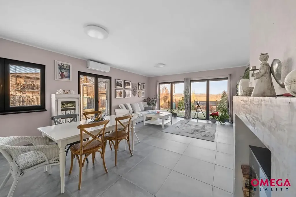Nabízíme moderní, přízemní, dvougenerační dům kolaudovaný v roce 2021, situovaný na vlastním pozemku o rozloze 1 005 m², s užitnou plochou 185 m² a zastavěnou plochou 212 m². Dům je koncipován jako dvě plnohodnotné bytové jednotky 4+kk se samostatnými vchody, přičemž každá nabízí tři ložnice, prostorný obývací pokoj s kuchyní a jídelnou s přímým vstupem na zahradu, koupelnu a WC. Jednotky lze jednoduchým propojením využívat i jako jeden komfortní rodinný dům o velkorysé ploše 185 m². Interiér je laděn do nadčasových světlých tónů, nechybí luxusní kuchyně se spotřebiči, podlahové vytápění, krbová kamna a velká okna orientovaná do zahrady, která zajišťují dostatek denního světla a příjemnou atmosféru. Součástí domu je také půdní prostor o velikosti 25 m² a architektem navržená zahrada s hustou zelení, poskytující naprosté soukromí. IS – elektřina, obecní vodovod, kanalizace. Dům je osazen solárními panely.