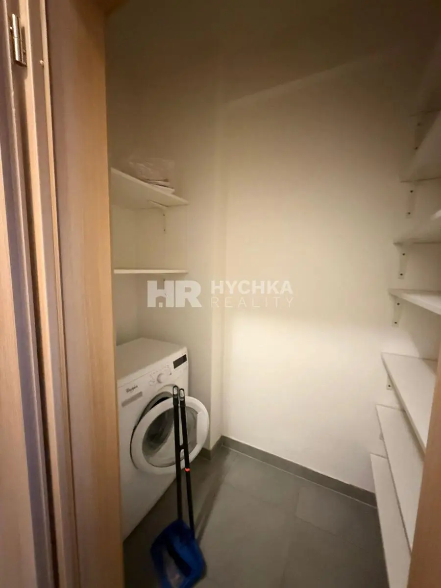 Pronájem bytu 2+kk, podlahová plocha 57m2 v 6.patře skeletového domu. Moderní novostavba z r. 2014. Byt částečně zařízený: kuch.linka s el. sporákem, myčkou lednice, pračka. Z obýváku výstup na terasu směrem do dvora. Koupelna s vanou, WC oddělené, komora. Plovoucí podlaha, dlažba. K bytu patří podzemní parkovací stání. Dům se nachází v lukrativní lokalitě, perfektní doprava do metra tramvajím a busem MHD. Kompletní občanská vybavenost. Volný k nastěhování.