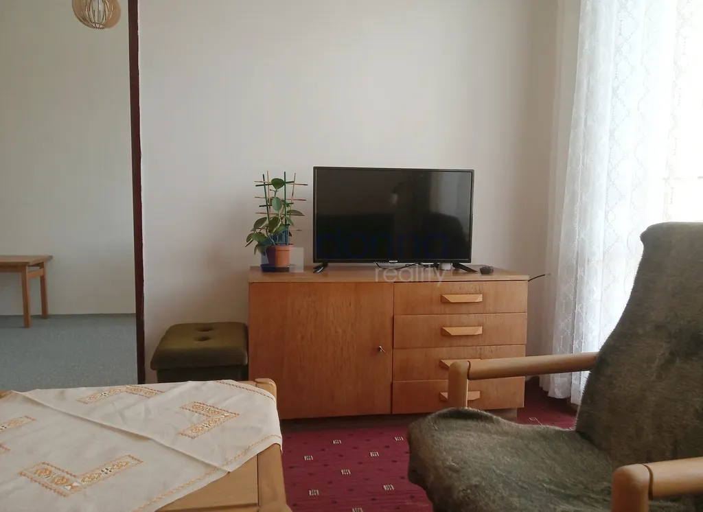 Byt je převážně zařízený, z předsíně s vestavěnými skříněmi lze vstoupit do kuchyně, ložnice, obývacího pokoje a dalšího pokoje.