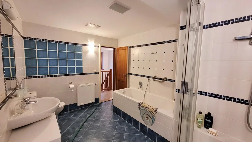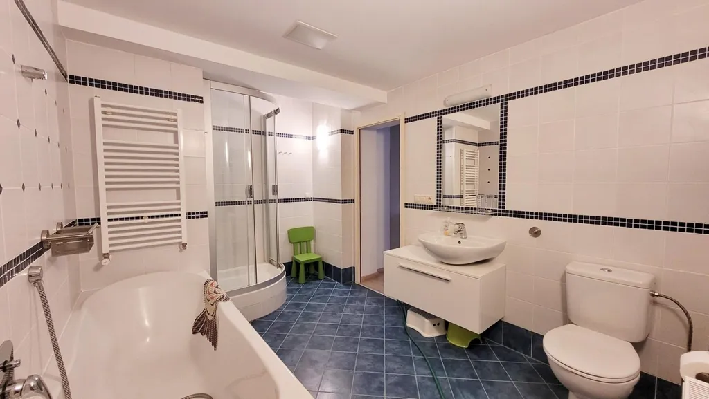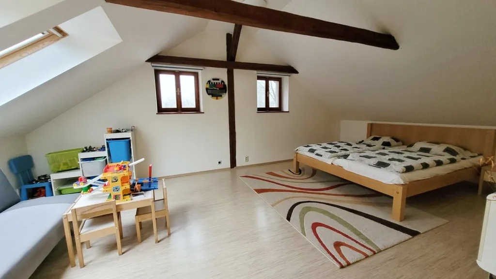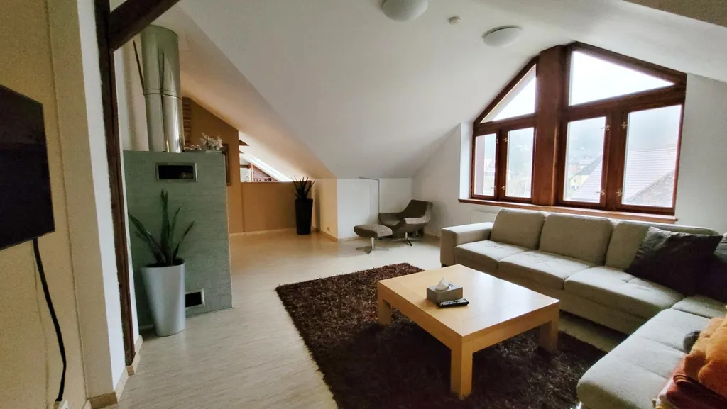 Exkluzivně nabízíme k prodej kompletně zařízeného bytu o dispozici 3+1 a celkové rozloze 141,9 m2 (obytná plocha 123,7 m2) jehož příslušenství tvoří terasa 34,3 m2 a sklep o rozloze 35,6 m2 v klidné části obce Bedřichov. Příjezd po zpevněné silnici, vlastní parkoviště pro rezidenty. Výměry místností: pokoj s jídelnou a kuchyní 65,4m2, dětský pokoj 25,1 m2, ložnice 19,3 m2, koupelna s WC 8,5 m2, prádelna s druhým WC 5,4 m2, chodba a schodiště 10,8 m2, chodba 7,4 m2 a dále sklep přístupný ze zahrady 35,6 m2 /sklep je sdílený a možné je využívat jej z jedné poloviny/ a privátní terasa 34,3 m2). Vstup do bytu se nachází ve druhém nadzemním podlaží a v tomto podlaží se nachází pouze předsíň se schodištěm do 3.podlaží ve kterém se nachází celý byt (velmi klidný podkrovní byt bez přímých sousedů). Z inženýrských sítí je k dispozici přípojka elektřiny, vodovod, kanalizace. Topení zajištěno kombinací vlastního elektrokotle s etážovým rozvodem a krbových kamen, ohřev vody zajištěn vlastním elektrickým 150 litrovým bojlerem. Připojení k internetu 02 nebo wifi síť místních poskytovatelů. Měsíční náklady .ve výši 3.900,-Kč z čehož je 2.485,-Kč fond oprav + elektřina, dle spotřeby - dodavatel ČEZ + internet. Energetická náročnost budovy nebyla doložena a z toho důvodu je uvedena hodnota G. Dům byl kompletně rekonstruován v roce 2007 a v roce 2010 byla dokončena výstavba předmětného bytu. Společenství vlastníků nemá žádné dluhy a na jaře bude probíhat oprava hydroizolace terasy a dále budou opraveny/vyměněny okapové žlaby. Úklid společných částí domu, úklid sněhu zajištěn správní firmou. V obci Bedřichov je možné realizovat širokou škálu aktivit, jako je například sjezdové lyžování, vyhlášené běžecké lyžování, snowboarding a v létě je místo ideální pro turistiku, cykloturistiku a mnoho dalších aktivit. V případě únavy se v blízkém okolí nachází wellness resort poskytující veškerý servis. Výborná dostupnost Jablonce nad Nisou, Liberce a díky dálnici je dobře dostupné hlavní město Praha. Pro více informací či se zájmem o prohlídku nás neváhejte kontaktovat.
