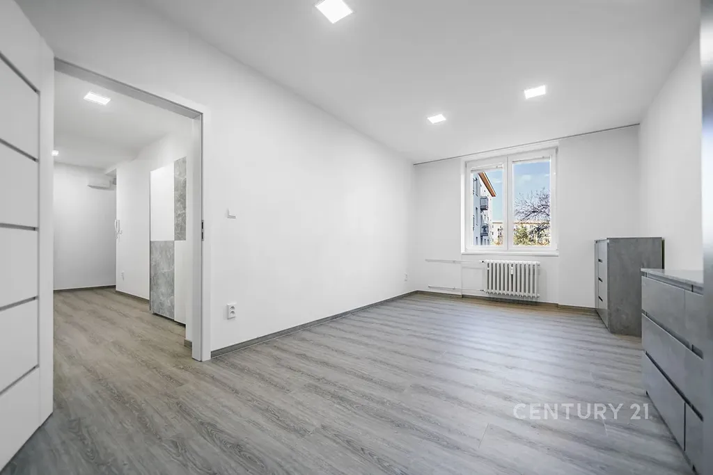 Byt se nachází v 1. patře cihlového domu a nabízí velmi příjemné bydlení. Dispozice zahrnuje dva neprůchozí pokoje. Obývací pokoj je vybaven sedací soupravou, konferenčním stolkem, televizní stěnou a je z něj přímý vstup na balkon. V ložnici i na chodbě je k dispozici dostatek úložných prostor v podobě skříněk a šatních skříní.
