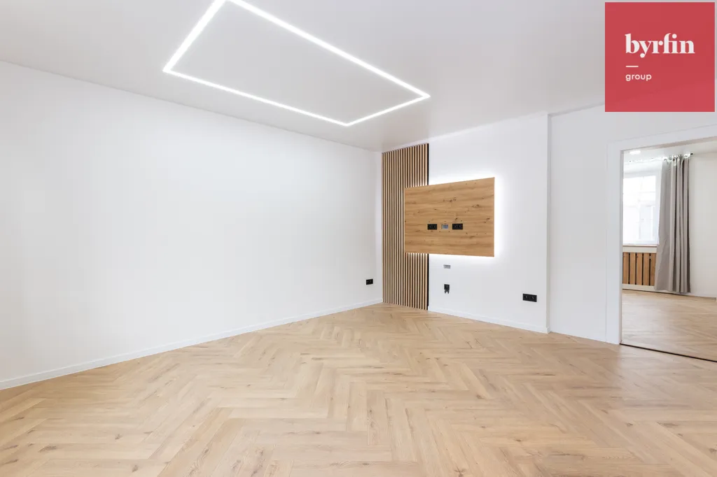 Bytová jednotka prošla zdařilou a citlivě řešenou kompletní rekonstrukcí, při které byl kladen důraz detail a nadčasový vzhled. Celková podlahová plocha činí 72,16 m², užitná plocha bytu je 66 m². K bytu náleží také prostorný zděný sklep o výměře cca 4 m².