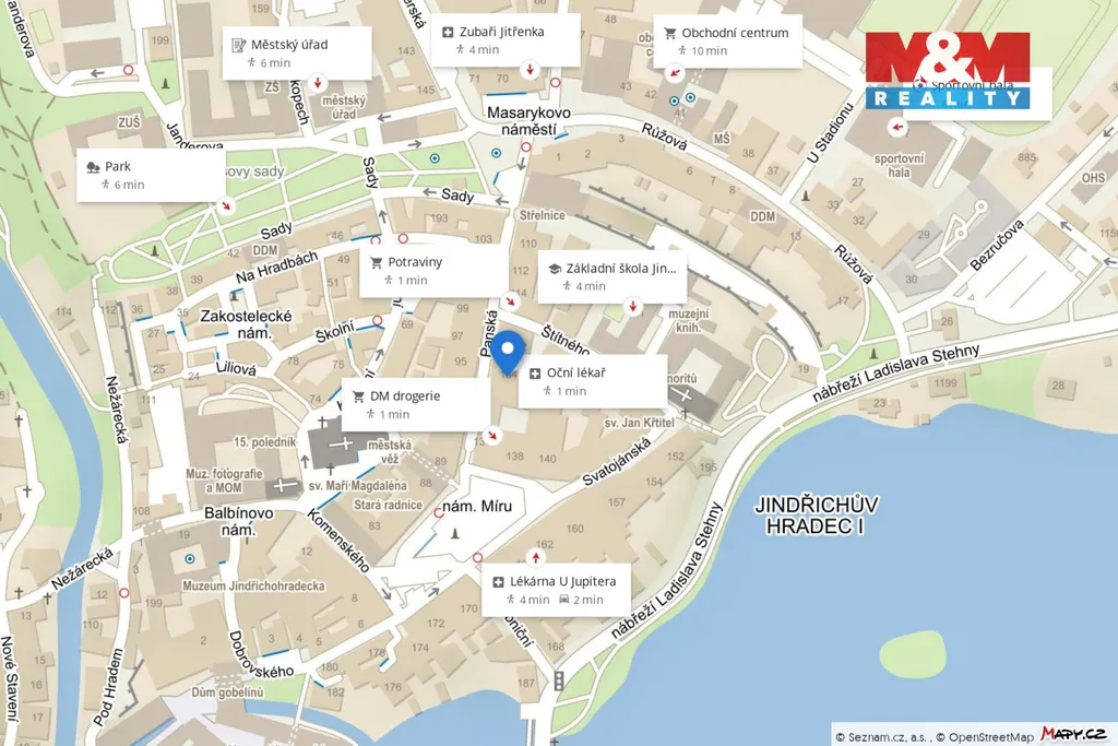 Nabízíme k pronájmu byt o dispozici 2+1 a celkové ploše 80 m2 ve druhém patře zděného domu v centru Jindřichova Hradce v Panské ulici. Byt je orientovaný na západ. Skládá se ze vstupní haly, obývacího pokoje, kuchyně, ložnice, koupelny, samostatného WC a komory. Byt je zařízený, ale je možné si ho zařídit i vlastním nábytkem. Na podlaze je keramická dlažba a koberec. V docházkové vzdálenosti jsou obchody, pošta, mateřská i základní škola, sportoviště, park, zámek. Obchodní zóna, hypermarkety Albert, Kaufland a Lidl jsou vzdáleny 5 minut autem. Součástí nájemného nejsou zálohy na služby (1000 Kč) a elektřinu. Elektřina bude převedena na nájemce. Vratná kauce činí dvacet tisíc korun. Byt je volný ihned. Pro více informací kontaktujte makléře.