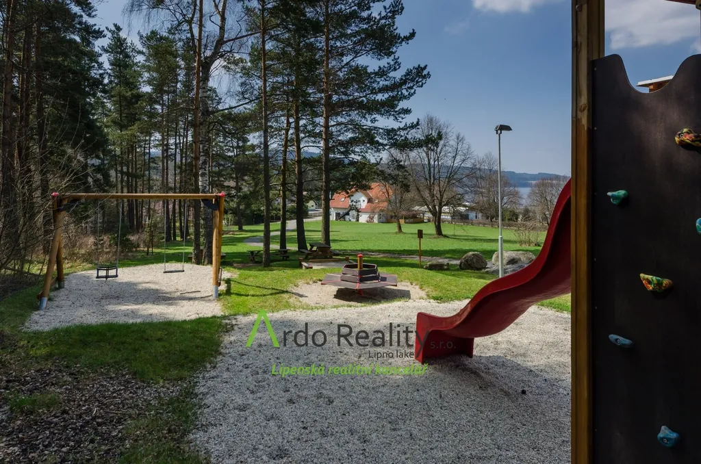 Krátkodobý pronájem bytu o velikosti 67 m2 v areálu DOKY Holiday resort v Lipně nad Vltavou poblíž nádherné pláže, aquaparku, skiareálu Lipno a přímo na cyklistické stezce. V areálu Doky je k dispozici venkovní vyhřívaný bazén, brouzdaliště pro děti, dětské hřiště, relaxační centrum se saunou a vlastní parkoviště. Areál je plný okrasné zeleně a parkových ploch. Apartmán je vhodný pro 4 osoby. Je zde elektrické vytápění, obytná místnost s rozkládací pohovkou, barevnou TV, jídelním stolem a kuchyňským koutem se sklokeramickou deskou (2 plotýnky), barovým pultem, elektrickou troubou, varnou konvicí, mikrovlnnou troubou a myčkou na nádobí. Byt je kompletně vybaven včetně lůžkovin, nádobí a zařízení kuchyně. Z obývacího pokoje je vstup na 7 m2 velkou terasu se zahradním nábytkem pro 4 osoby. Další místností je ložnice s manželským dvojlůžkem a vestavěnou skříní. V prostorné koupelně najdete vanu s umyvadlem a pračku. Byt má dále oddělené WC s malým umyvadlem. Poslední místností je sklep pro odložení lyží, jízdních kol a jiného materiálu. K nemovitosti patří vlastní parkovací stání.