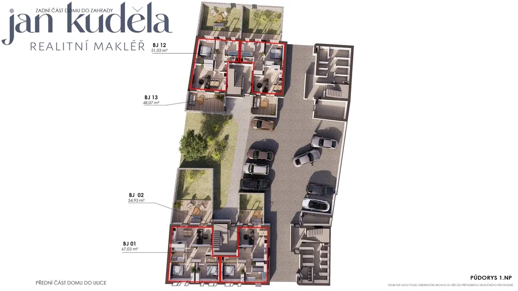 Projekt počítá s výstavbou bytového domu o celkem 22 bytových jednotkách v dispozicích 1+kk, 2+kk a 3+kk. Celková podlahová plocha bytů činí 1 102 m², k dispozici je 22 parkovacích stání ve vnitrobloku a 16 sklepních kójí. Většina bytů disponuje vlastním balkonem nebo předzahrádkou, což výrazně zvyšuje atraktivitu bydlení i jeho dlouhodobou tržní hodnotu.