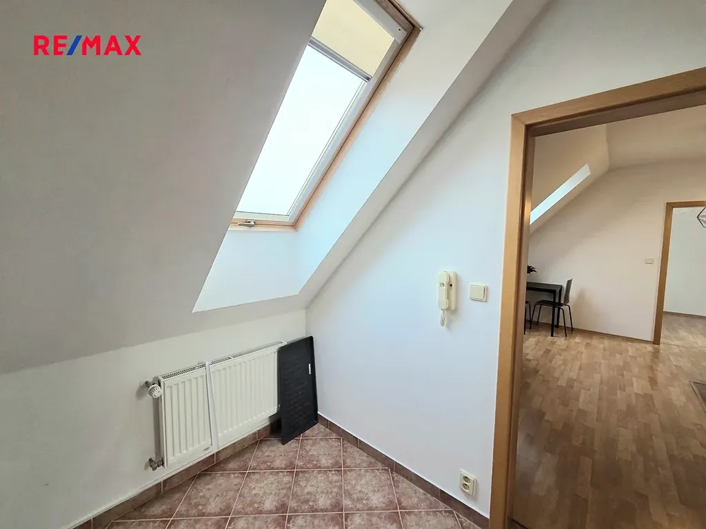 Nabízíme podkrovní byt 2+kk ve vyhledávané lokalitě Jesenice u Prahy. Byt zahrnuje obývací část s kuchyňským koutem, jehož součástí je linka s vestavěnými spotřebiči. Součástí bytu je ložnice, koupelna s vanou a prostorná předsíň. K bytu patří rovněž podíl na společné zahradě o rozloze 500m2. Celková výše měsíčních záloh cca. 4500Kč. Parkování možné před domem. Byt se nachází ve velice klidné části Jesenice s veškerým občanským vybavením. Rychlé napojení na Pražský okruh, centrum Prahy dostupné za cca. 20 minut. Pravidelné autobusové linky zajišťují spojení na metro C. V případě vašeho zájmu vám ráda osobně nemovitost představím.