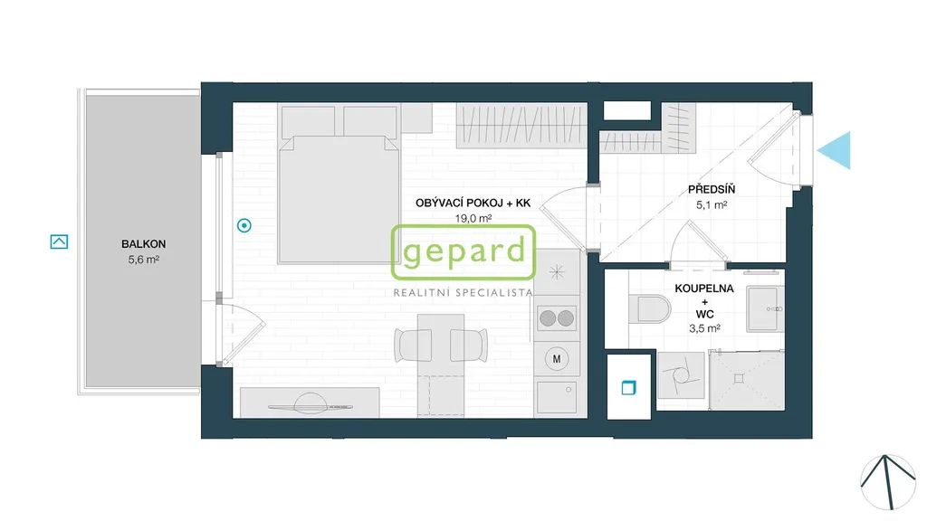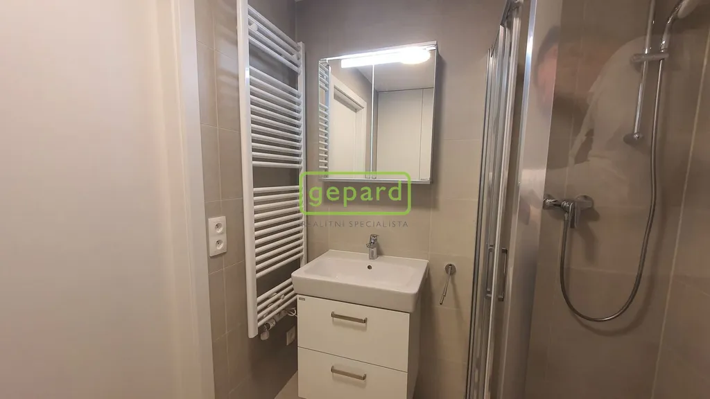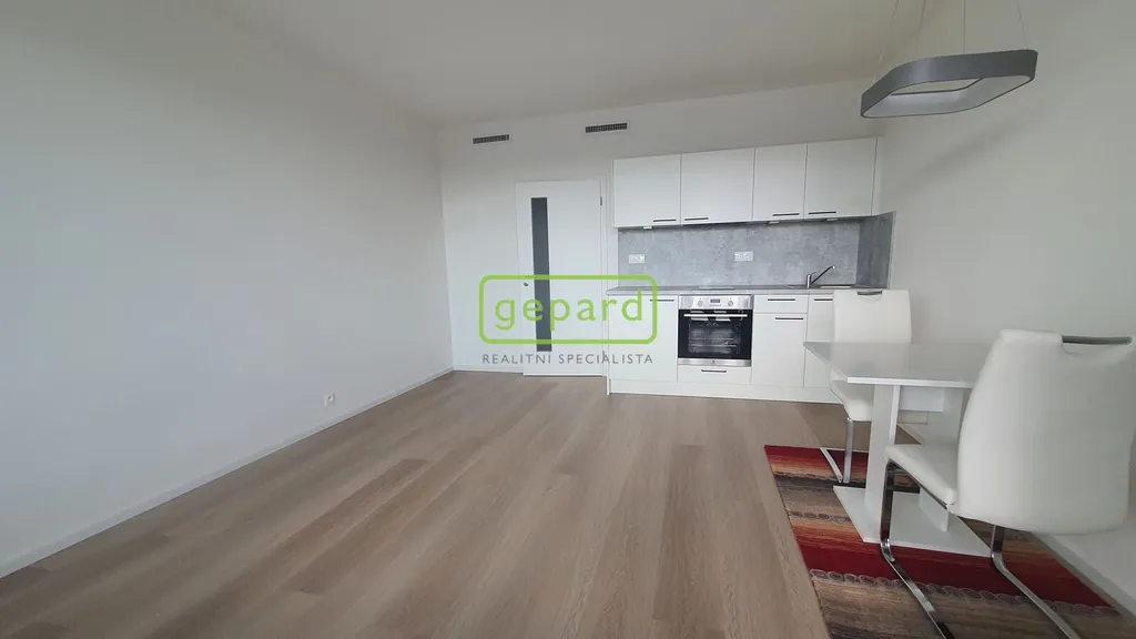 Byt se nachází v 3. NP domu a je orientován na západní stranu. Z předsíně jsou samostatné vstupy do obývacího pokoje s kuchyňským koutem a koupelny společné s WC. Kuchyňská linka je vybavena, sklokeramickou deskou, troubou a lednicí. Koupelna je se sprchovým koutem. Byt je částečně zařízený, jídelním stolem se dvěma židlemi. Podlahy jsou plovoucí, dekor světlý, plastová okna s trojskly, dveře a zárubně dveří s bílým dekorem a vstupní protipožární dveře s ocelovou zárubní. Velmi praktický je i zasklený balkon. Výhodou je optická síť až do domu pro internet, telefon a kabelovou televizi. Záloha na služby ve výši 4.000, je stanovena vč. zálohy na elektřinu.