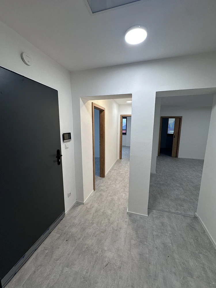 Dispozice bytu je naprosto ideální pro vícečlennou rodinu. Dětské pokoje jsou neprůchozí, vstup do ložnice je z obývacího pokoje. Každý člen domácností má své soukromí. Byt je nově vymalován. Součástí bytu je nová kuchyňská linka včetně spotřebičů – indukční varná deska, trouba, myčka, mikrovlnná trouba. Lednice není součástí nájmu.