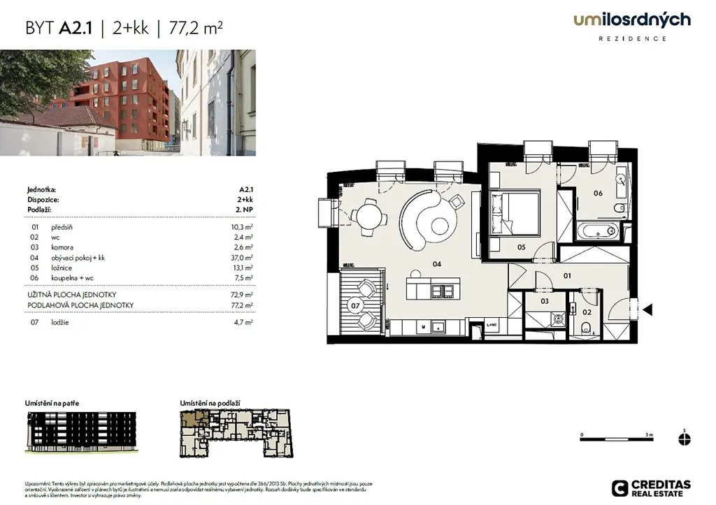 Jednotka bude kompletně vybavena vestavěným i solitérním nábytkem, což zaručuje maximální pohodlí a komfort pro nové nájemníky. Design celého projektu je nadčasový a elegantní, čímž vytváří harmonii mezi moderním stylem a historickou atmosférou Starého Města. Projekt U Milosrdných se nachází v lukrativní části historického centra Prahy, jen pár kroků od řeky Vltavy a oblíbené náplavky. Perfektní dopravní dostupnost zajišťuje stanice metra B – Náměstí Republiky, která je vzdálena jen několik minut chůze. V bezprostředním okolí najdete veškerou občanskou vybavenost, včetně OC Palladium a pestré nabídky restaurací či kaváren.