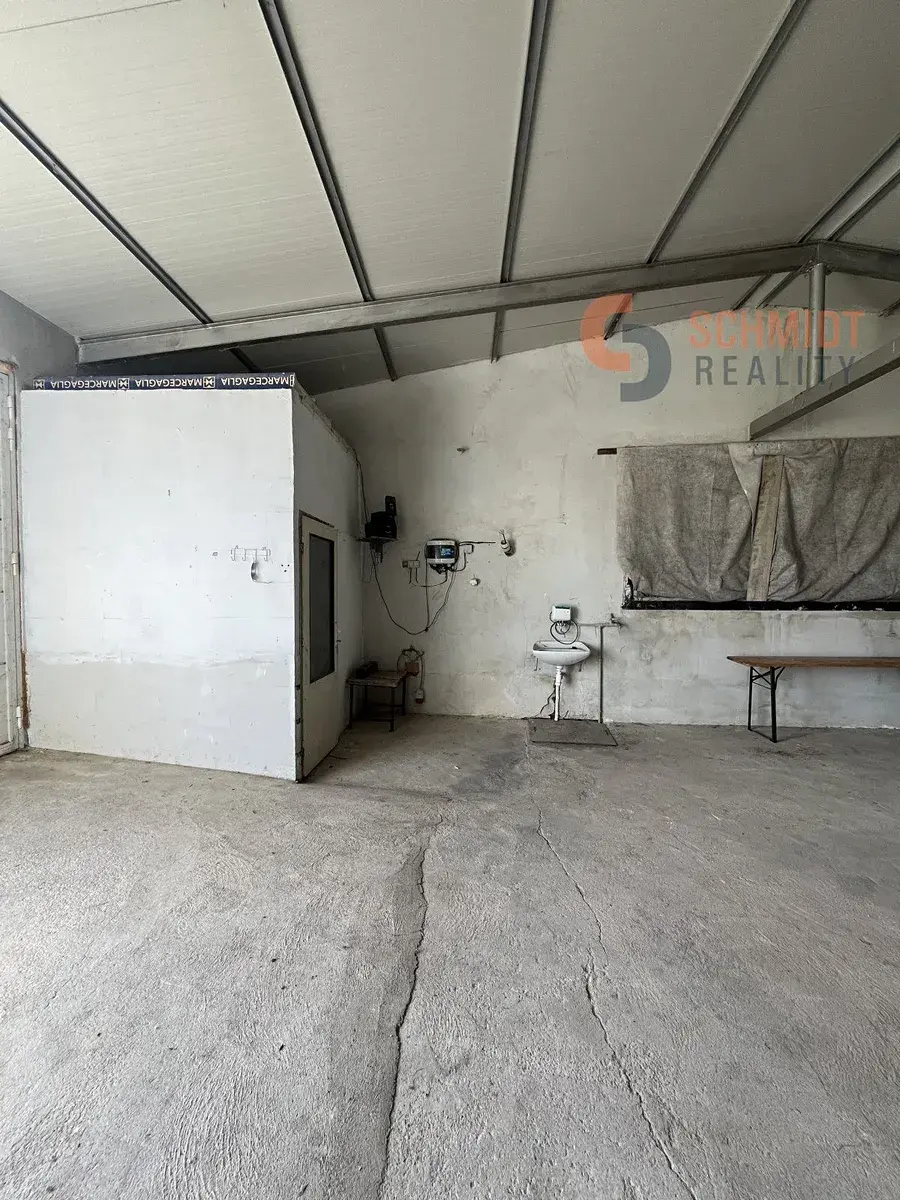 Zastřešené skladovací prostory nabízí plochu 624m2 a se sedlovou střechou o výšce stropu 3,3m. Nemovitost je napojena na elektřinu a vodu. Kanalizace je formou jímky. Dále je k dispozici širší část pozemku o rozměru cca 980m2 ohraničená cihlovou zídkou, s další možností skladování.