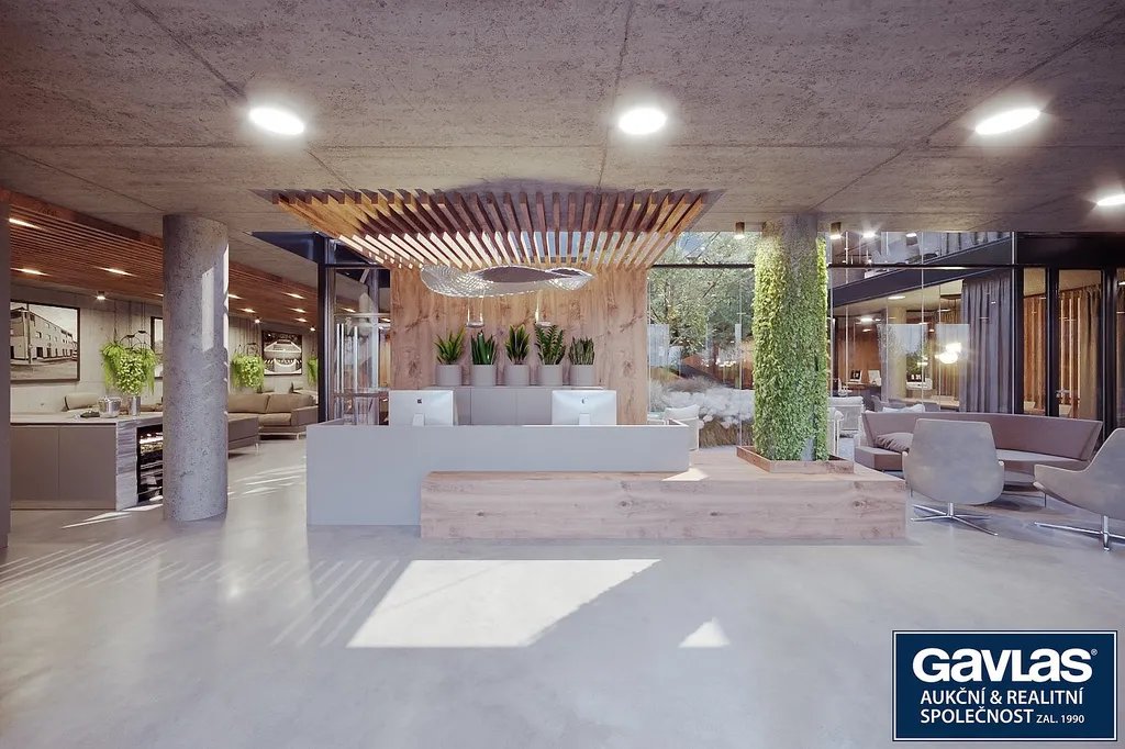 • Dvoupodlažní administrativní budovu ve fázi hrubé stavby s plánovanou užitnou plochou 983 m²