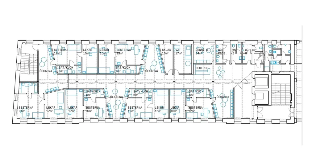 V současné době se areál postupně přeměňuje na moderní víceúčelový objekt, který vám nabídne dostatek obchodních, kancelářských prostor nebo zázemí pro nové ordinace lékařů, ale možná i vizionáře pro zcela jiný projekt. V nabídce nově nabízíme dlouhodobý pronájem prostoru s velkorysou výměrou 632m2, který je umístěný ve 3.NP obchodního centra s výtahem. Stávající sociální zázemí je k dispozici. Po dohodě je možné provést stavební úpravy nájemcem a náklady zohlednit v ceně nájmu (fotografie jsou vizualizace, jak by mohla vypadat vaše nová ordinace se zázemím).