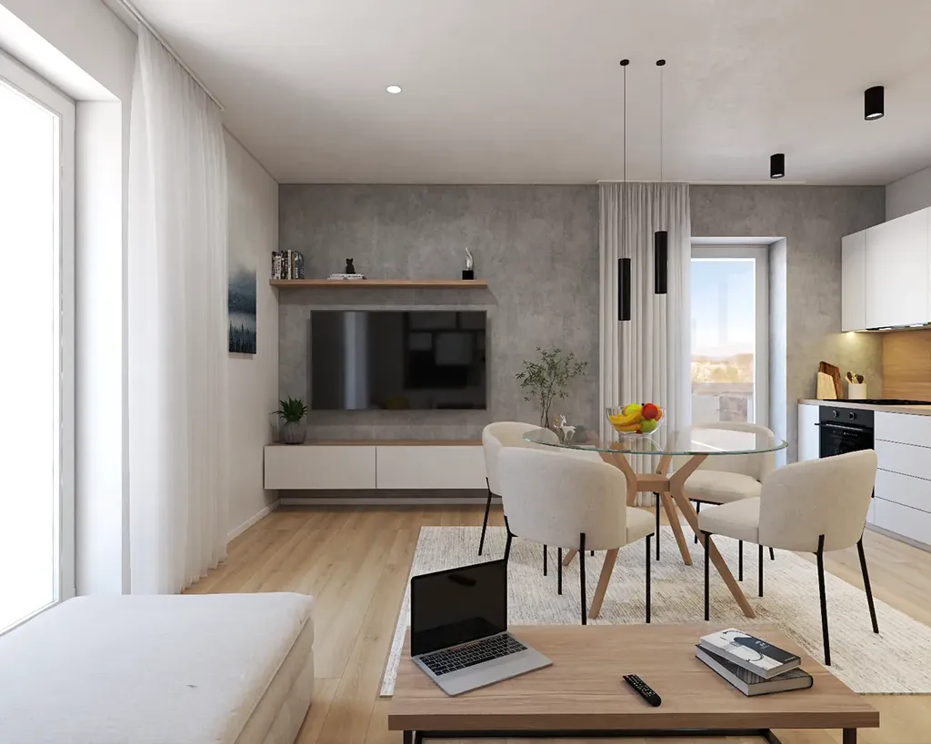 Byty jsou vybaveny kuchyňskou linkou s vestavnou varnou deskou, troubou a digestoří. Koupelna disponuje sprchovým koutem, umyvadlem se skříňkou, toaletou a přípojkou na pračku. Byty jsou vybaveny interiérovými obložkovými dveřmi a na podlaze je položen vinyl. Jednoduchost, elegance, vzdušnost. Tři slova, která skvěle vystihují interiér. Interiér je navržen tak, abyste se cítili dobře, pohodlně a bezpečně. Byty jsou dokončeny ve vysokém standardu. Vybrat si můžete ve dvou barevných odstínech a to hnědé a šedé. Použité materiály byly voleny zejména s ohledem na kvalitu, dlouhou životnost, úsporu energií a moderní design.
