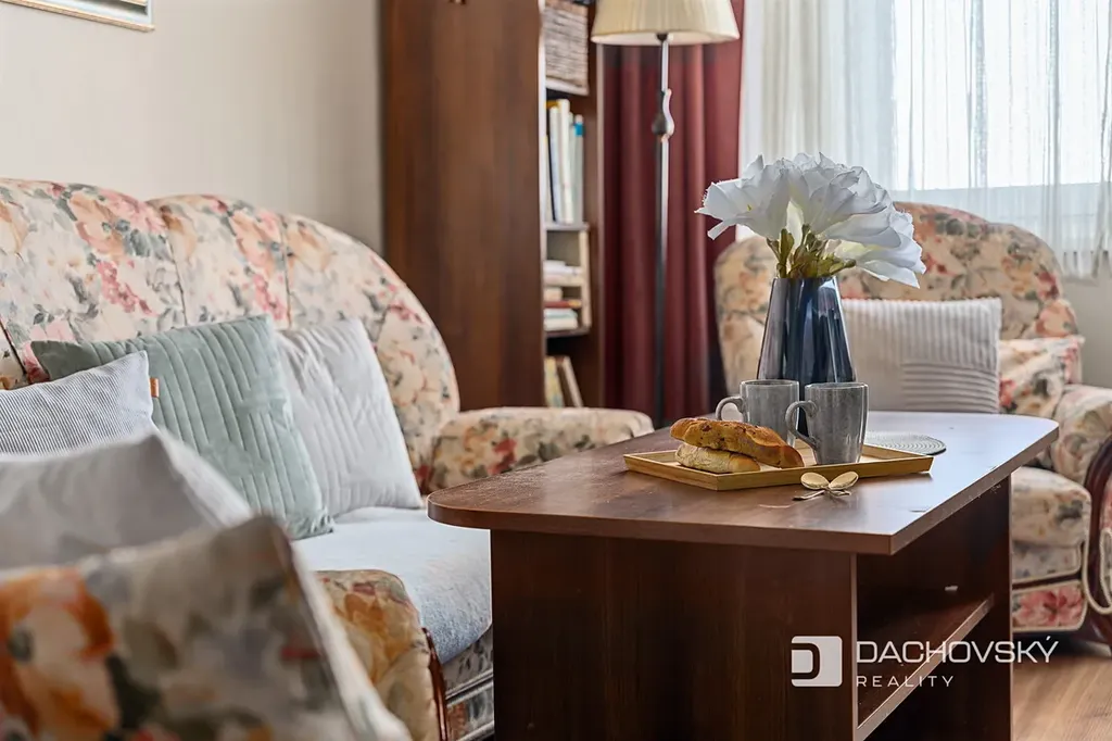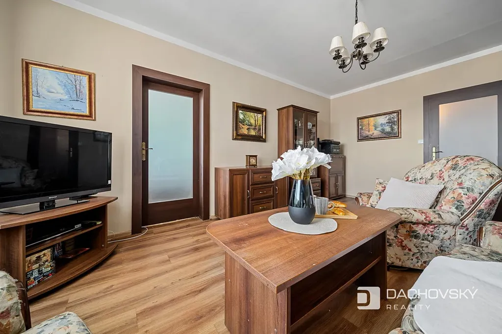 Byt prošel částečnou rekonstrukcí – nové vinylové podlahy, nové dveře s obložkami a vestavěné skříně. Koupelna je po kompletní rekonstrukci a je vybavena sprchovým koutem a keramickým obkladem. WC je samostatné. K bytu náleží sklepní kóje.