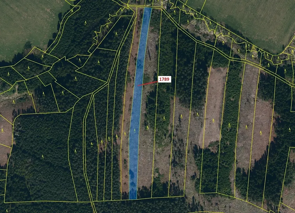 Lesní pozemek o výměře 5 036 m2, parcelní číslo 1789, podíl 1/1, katastrální území Štítné, obec Žirovnice, obec s rozšířenou působností Pelhřimov, okres Pelhřimov, Kraj Vysočina. Po těžbě.