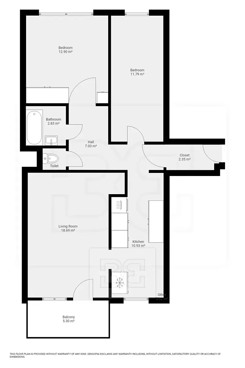 Dispozičně je byt velmi prakticky řešen. Samostatná kuchyň je vybavena spotřebiči (lednice, sporák, digestoř a myčka). Z kuchyně je přímý vstup do obývacího pokoje s balkonem. Byt dále nabízí dva samostatné pokoje, přičemž jeden z nich je vybaven šatní skříní. Koupelna je vybavena vanou, toaleta je řešena samostatně. Velkou výhodou je také velká propojovací chodba a samostatná předsíň. Na všech oknech jsou instalovány žaluzie.
