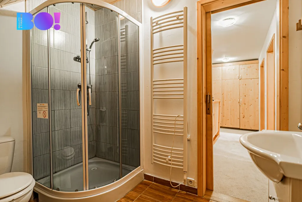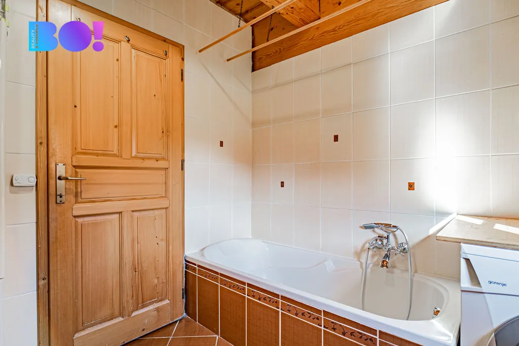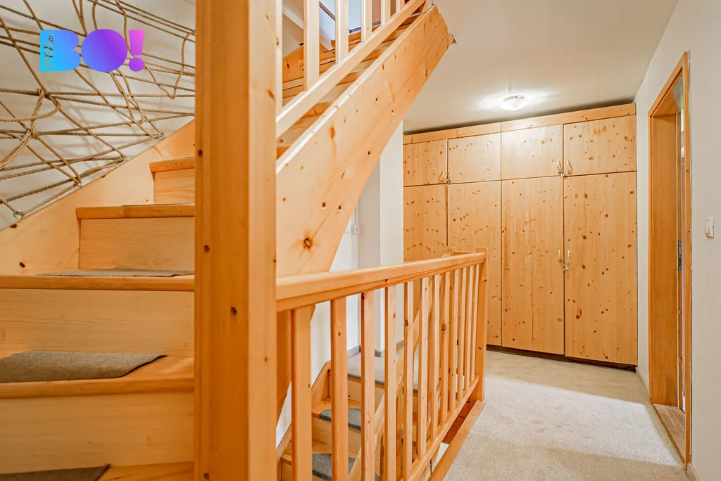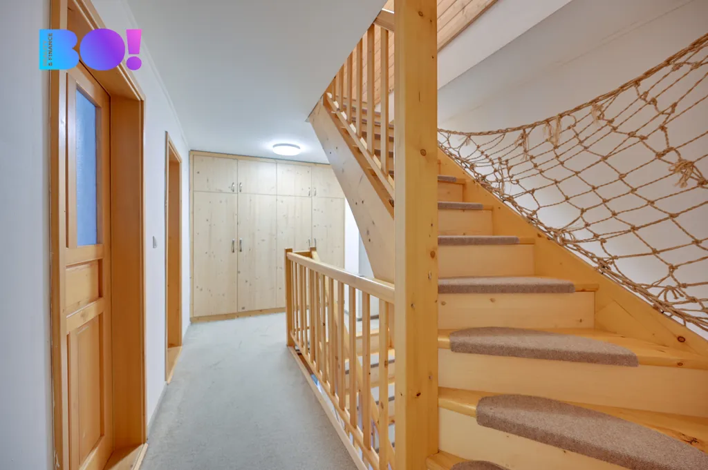 1. patro: druhá koupelna se sprchovým koutem, dva prostorné pokoje, úložné prostory