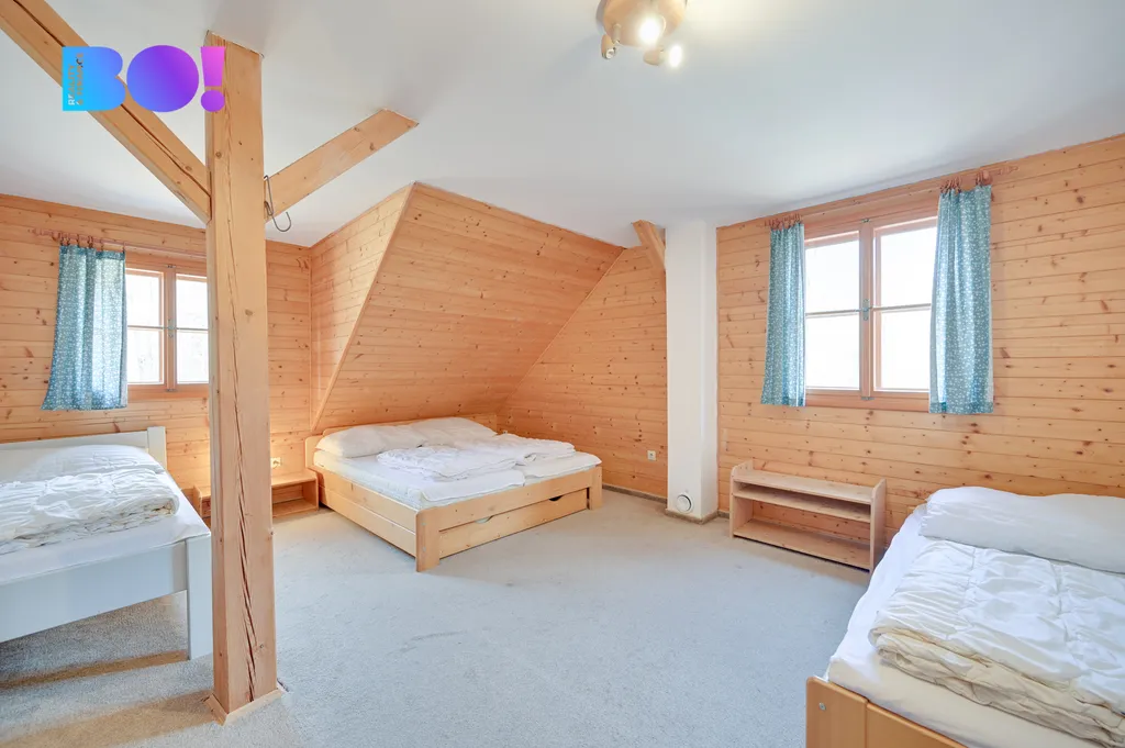 Roubenka je udržovaná a ihned obyvatelná – ideální pro víkendy s dětmi, větší rodinné pobyty, ale i pro hosty, kteří ocení atmosféru dřeva, prostoru a krbu.