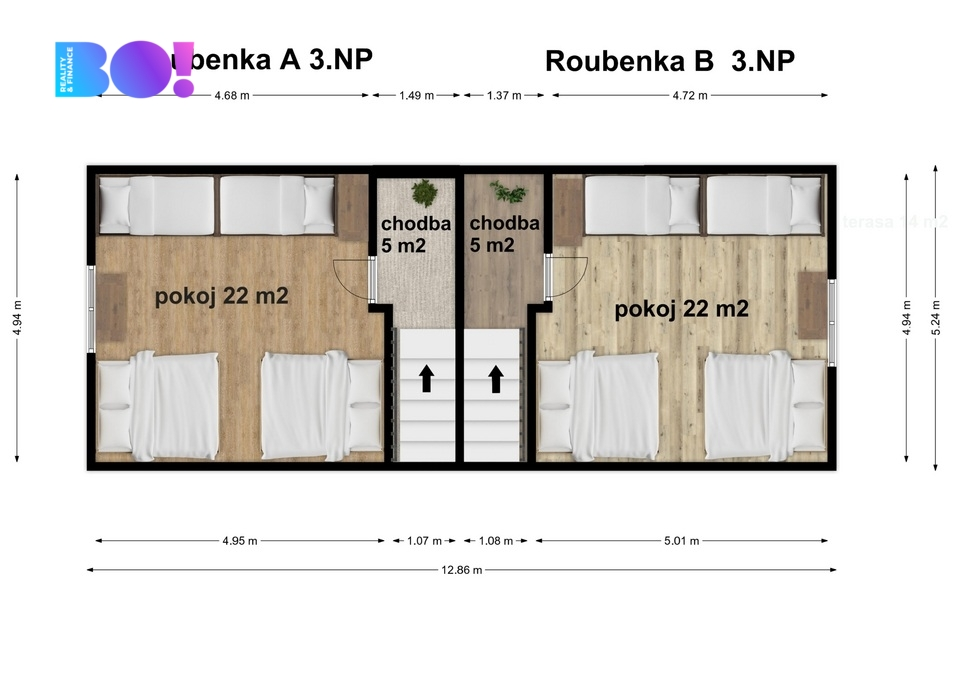 - 1 roubenku (A v půdorysu) 157 m2 (kapacita až 14 osob)