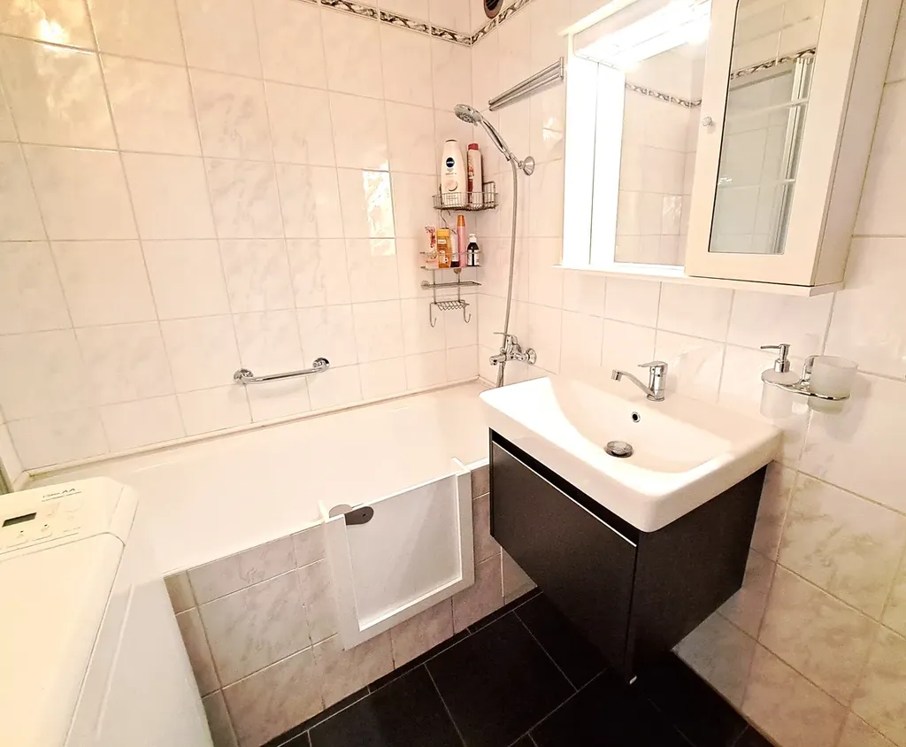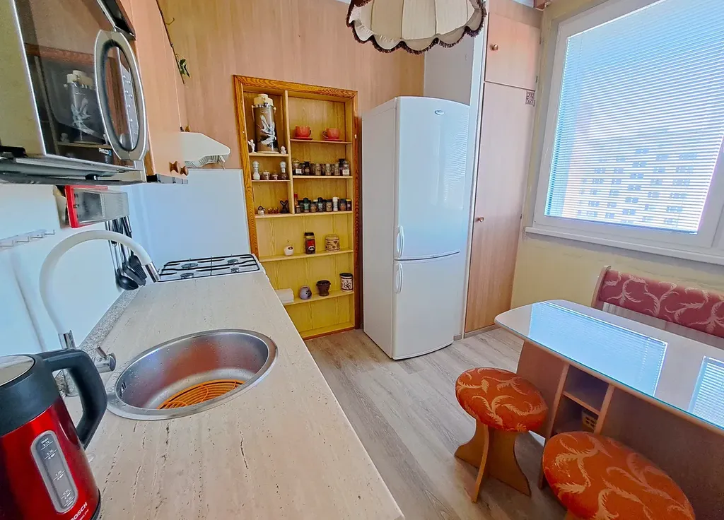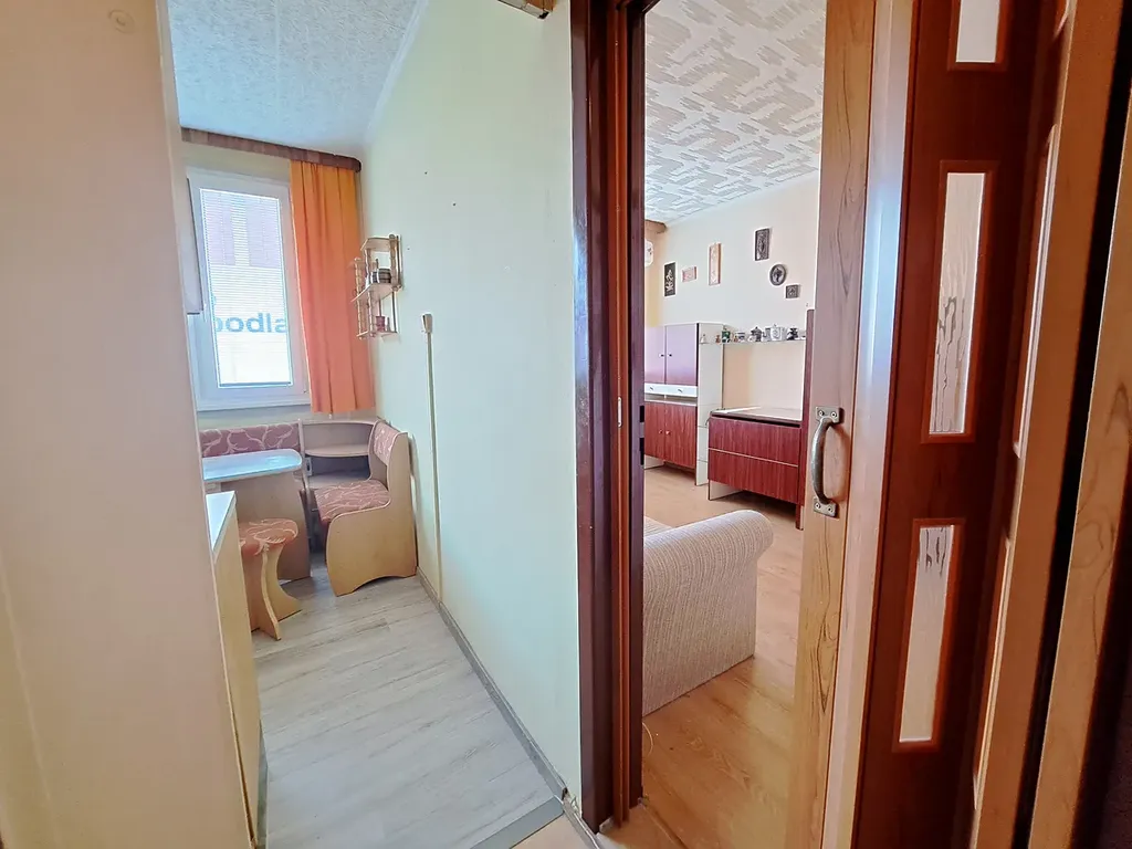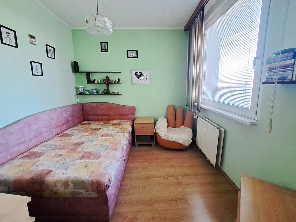 Dispoziční řešení bytu: prostorná vstupní chodba, šatna - vestavěné skříně, obývací pokoj s výstupem na zasklenou lodžii, koupelna (vana se skleněnou sprchovou zástěnou, umyvadlo, místo na pračku), samostatné WC, kuchyň s jídelním koutem, ložnice, pokoj. K bytu náleží sklep. Velká výhoda tohoto bytu je, že všechny místnosti jsou neprůchozí a dále velké úložné prostory v chodbě. V bytě jsou nová okna se žaluziemi, vstupní dveře, podlahy, koupelna je obložena, vestavěné skříně v chodbě, podlaha v lodžii včetně skleněné zástěny apod.