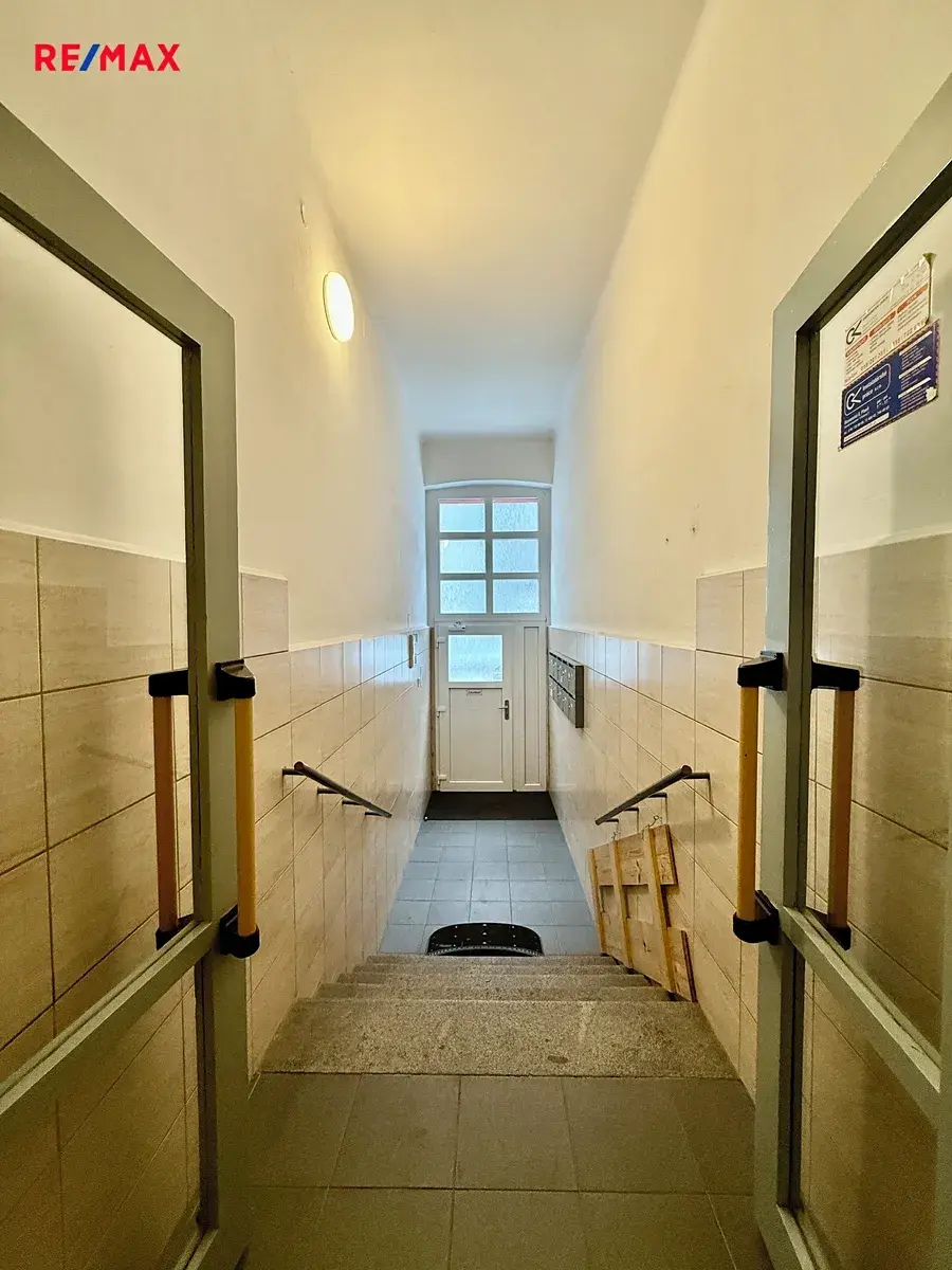 Byt je částečně vybavený – k dispozici je kuchyňská linka a vybavená koupelna. K bytu náleží také menší sklepní kóje.