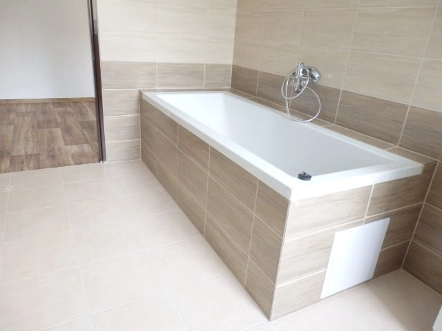 Koupelna s vanou, elektrický bojler na ohřev vody, podlahy jsou z keramického obkladu a plovoucí podlahy, nová kuchyň. Před domem jsou k dispozici parkovací místa.