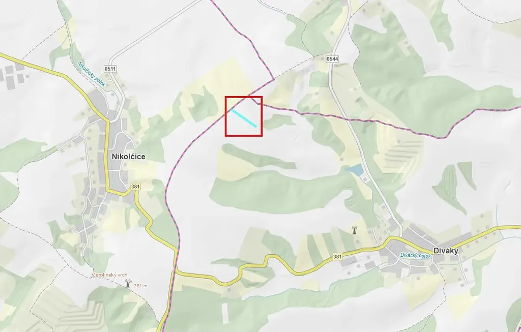 V kú Diváky na LV 402 se jedná o tento pozemek: