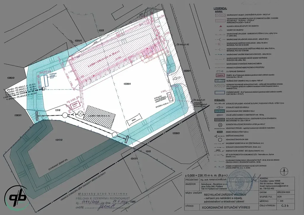 Nabízíme k prodeji komerční pozemek v průmyslové zóně, o výměře 7.384 m2 ve Vratimově na ul. Mourova. Pozemek je ze všech stran obehnaný valem ze zeminy, vysokým cca. 3 m, přístup přes posuvnou vjezdovou bránu, připravenou na instalaci el. pohonu. Na pozemku je již zkolaudovaná dočasná stavba (do konce r. 2030) skladové a manipulační plochy, zpevněné plochy, vstupní vjezdové brány, vsakovacího zařízení a odlučovače lehkých kapalin a je vydáno stavební povolení k výstavbě Haly o zastavěné ploše 942,31 m2 (60,56 x 15,56 m).