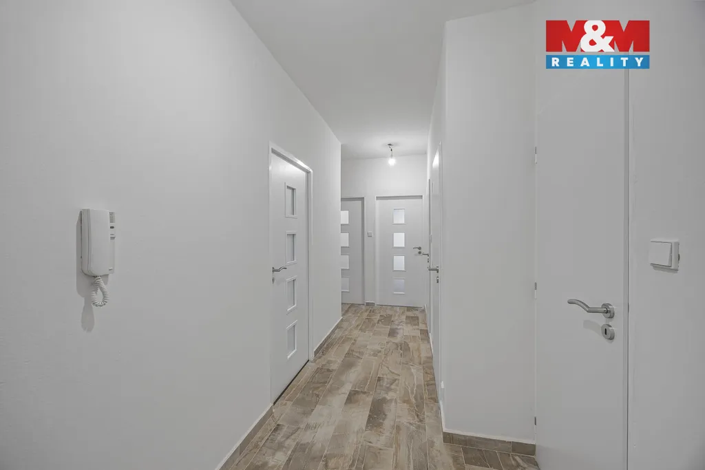 Dispozice bytu nabízí tři neprůchozí pokoje (obývací pokoj, dětský pokoj a ložnici). Z obývacího pokoje je vstup na prostorný balkón. Byt má samostatné WC a koupelnu po rekonstrukci se sprchovým koutem. V bytě se nachází také komora, která je vhodná na umístění pračky a sušičky. V suterénu domu se nachází prostorný zděný sklep a společná kolárna.