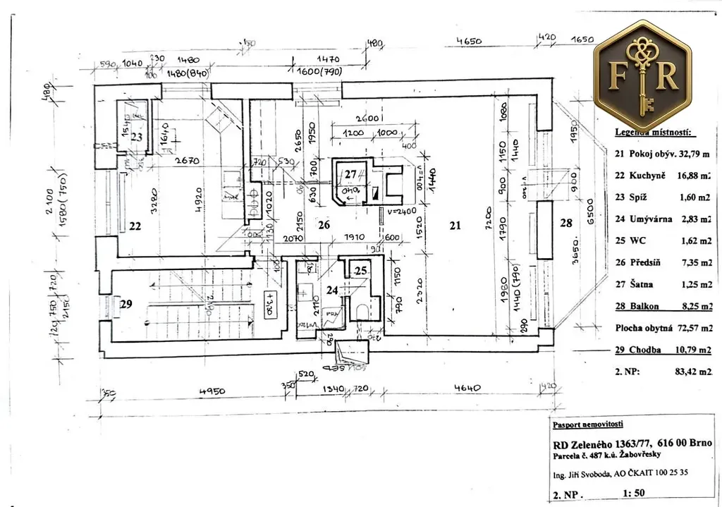 4+1 ve 2.NP a v podkroví (celkem 72,57m² + 62m²)