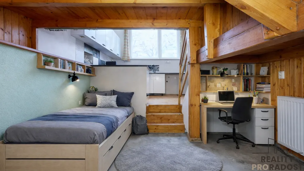 Byt nabízí chytré uspořádání a navíc zajímavý atypický prvek – galerii, která prostoru dodává charakter a otevírá možnosti kreativního řešení (pracovna, spaní, úložné řešení). Samozřejmostí je také sklep, který zvyšuje komfort budoucích nájemníků.
