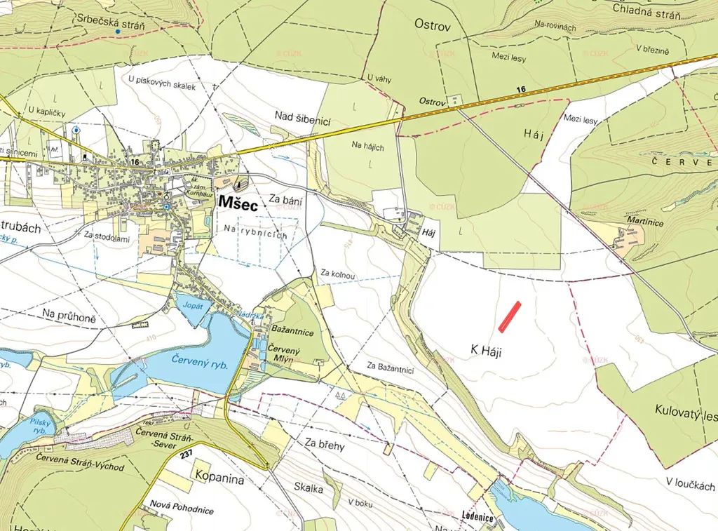 V katastrálním území Mšec, okres Rakovník, nabízíme k prodeji zemědělský pozemek, který je ve výlučném vlastnictví a zapsaný na listu vlastnictví č. 322.