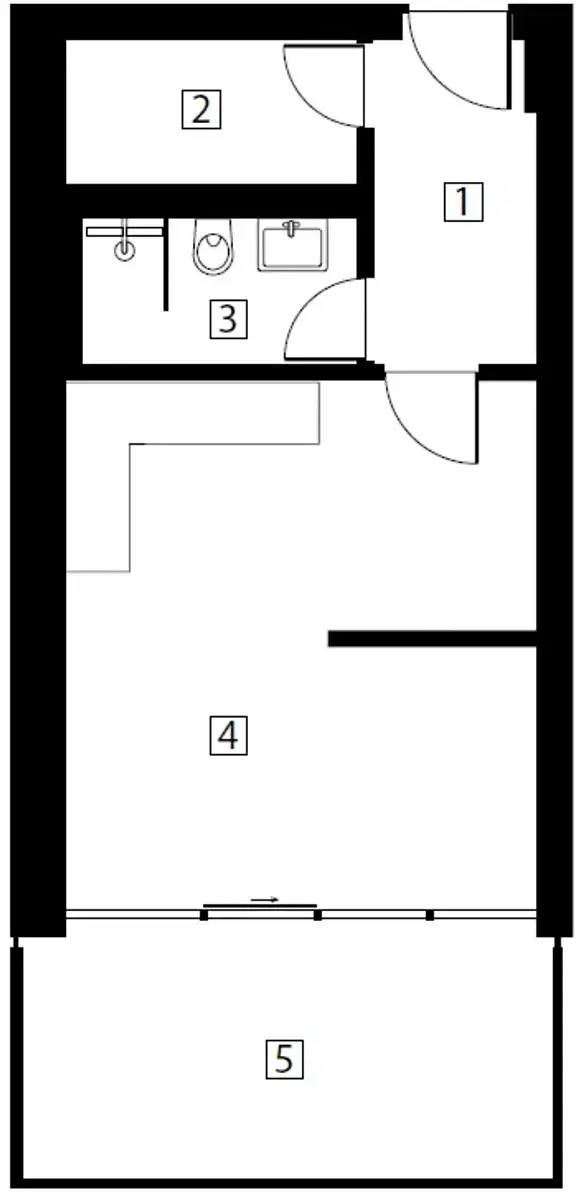 Tento apartmán má dispozice 1+kk, je orientovaný na jihozápad s výhledem na Lipno. Součástí standardu je podlahové topení, velkoformátová dlažba, nadčasová sanita, bezfalcové dveře a energetická třída B.