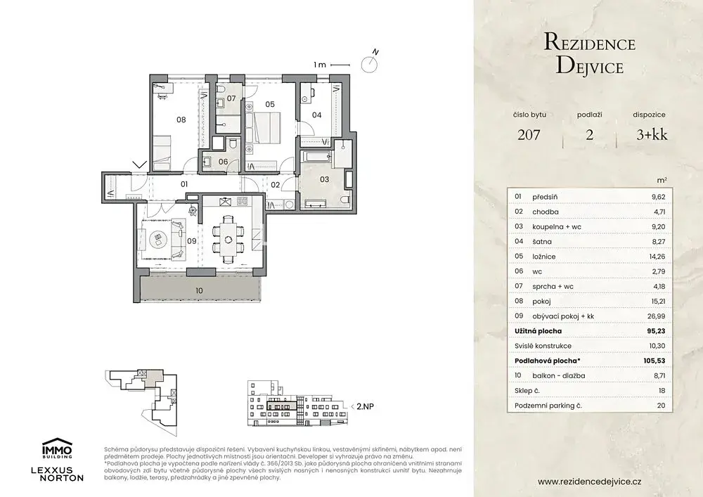 K prodeji nabízíme exkluzivní byt 3+kk v moderním projektu Rezidence Dejvice, který propojuje nadčasový design, vysoký standard vybavení a výjimečnou lokalitu v jedné z nejžádanějších částí Prahy. Byt disponuje užitnou plochou 95,23 m² a jeho hlavní dominantou je prostorný obývací pokoj s kuchyňským koutem a vstupem na balkon 8,71 m².