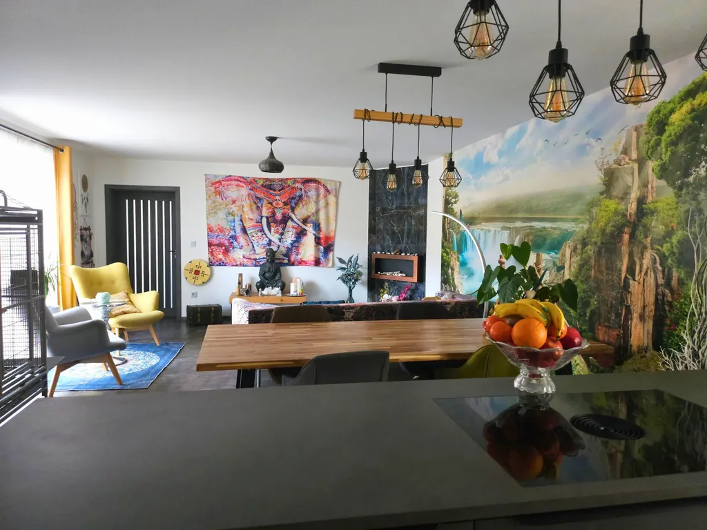 Dům byl zakoupen v roce 2021 jako hrubá stavba a během 2021–2022 citlivě dokončen s důrazem na kvalitu a energetickou úspornost. Prakticky vše je nové: izolace, rozvody, technologie i interiéry. Fasáda je obložena kamenem, což dává domu nejen šmrnc, ale i odolnost.