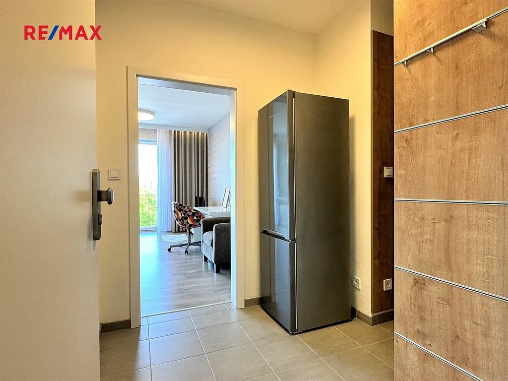 Prostor je prakticky řešen: vstupní chodba s prostornou vestavěnou skříní, koupelna s vanou a WC a hlavní obytná místnost s velkorysou kuchyňskou linkou vybavenou vestavěnými spotřebiči (elektrická trouba, sklokeramická varná deska, myčka nádobí). Díky velkému francouzskému oknu je obytná část světlá a slunná. Součástí bytu je také balkón, ideální pro ranní kávu, krátký odpočinek po práci nebo klidné posezení. Vytápění a ohřev vody jsou zajištěny ústředním plynovým vytápěním. Dům je moderní a dobře udržovaný a splňuje energetickou třídu PENB B, což znamená velmi úsporný provoz.