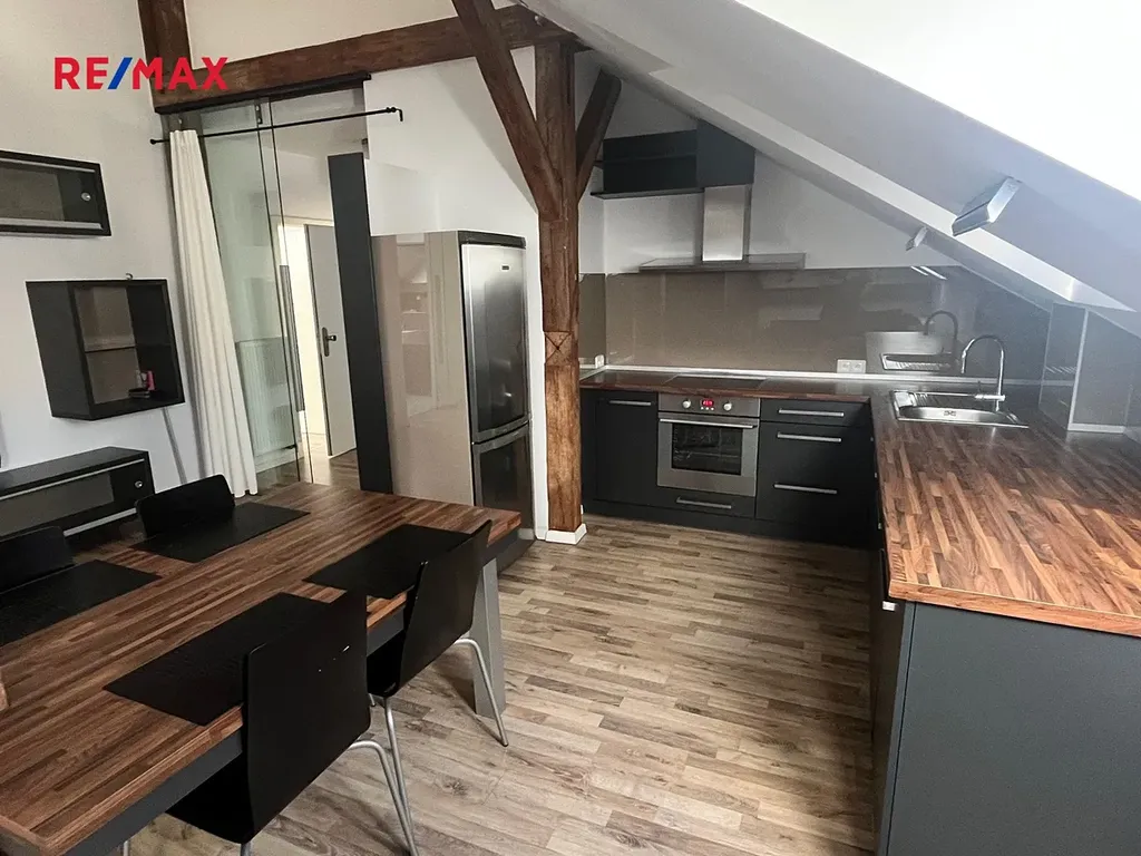 Velmi vkusně a precizně rekonstruovaný podkrovní byt s dispozicí 3+kk o výměře cca 80 m2 se nachází v 5. nadzemním podlaží v cihlového domu bez výtahu v centru Plzně ve Škroupově ulici.