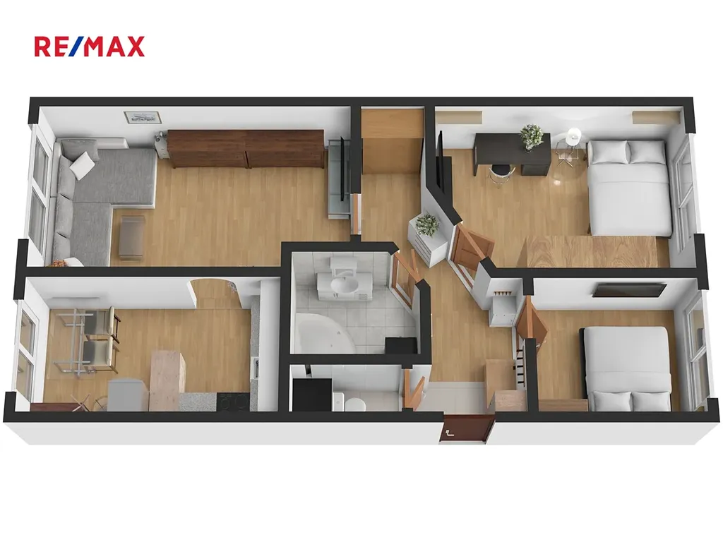 Zděné jádro, velká koupelna s rohovou vanou, kde si večer konečně vydechnete, dostatek světla a prostor pro rodinný život. Každý člen domácnosti tu má své místo.