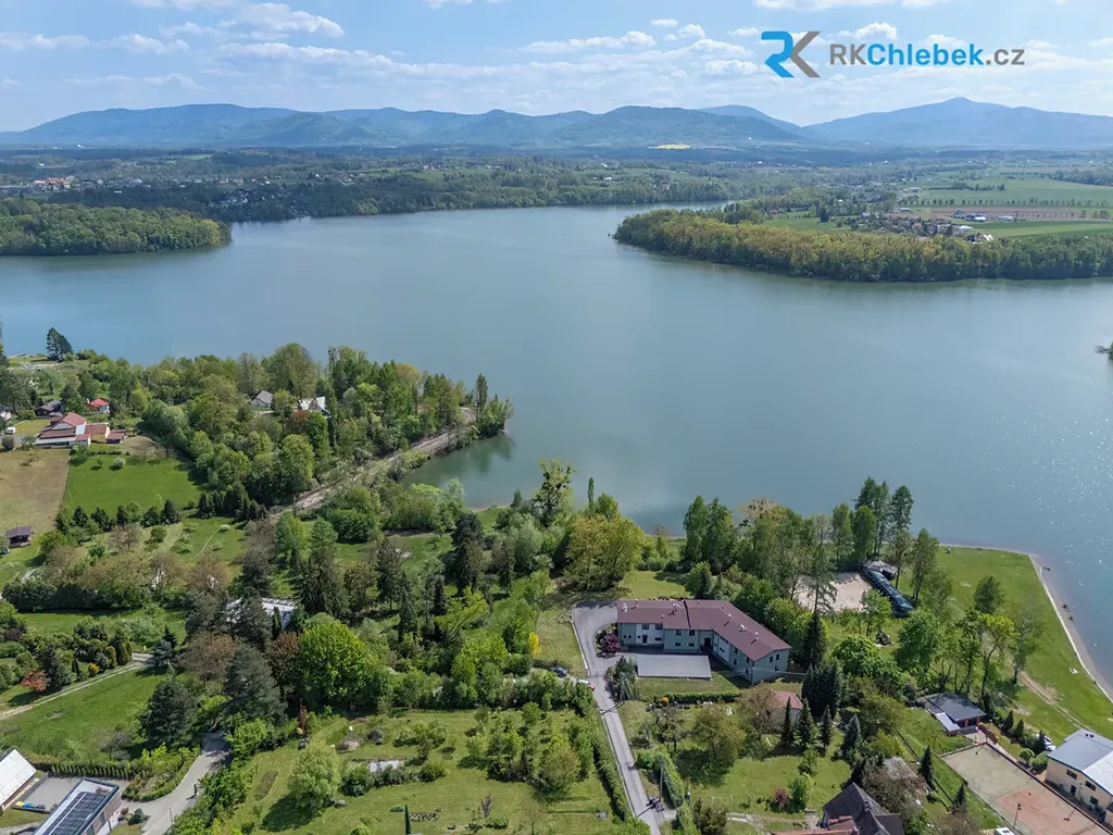 Z pozemku i z terasy nemovitosti je nádherný výhled nejen na přehradu, ale i na Beskydy.