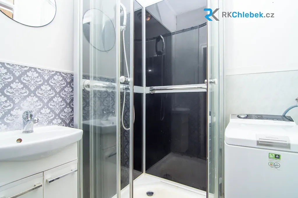 Koupelna je vybavena sprchovým koutem, toaleta je řešena samostatně. Výhodou je i prostorná vstupní chodba, která poskytuje dostatek místa pro odkládací prostor či úložné skříně.